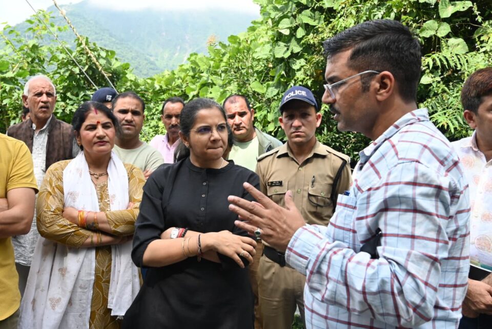 जिलाधिकारी नितिका खण्डेलवाल ने आज मंगलवार को तहसील बैनबाग क्षेत्रांतर्गत एनएच-707ए के आपदा प्रभावित क्षेत्र भेडियाना बस्ती (कैंपटी फॉल के नजदीक) पहुंचकर आंशिक धरने पर बैठे ग्रामीणों के साथ वार्ता की।