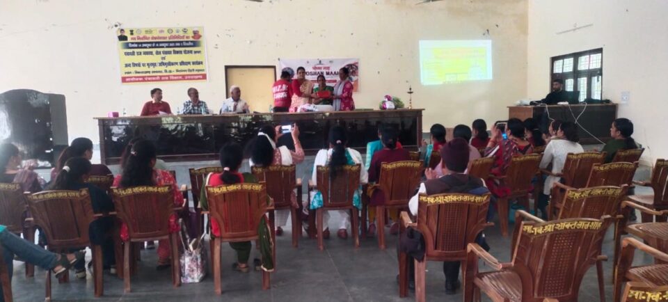 जिसमें सर्वप्रथम पोषण माह के आयोजन का उद्देश्य थीम व कार्यक्रमों की चर्चा की गई तत्पश्चात बाल विकास परीयोजना अधिकारी द्वारा भारत सरकार व राज्य सरकार द्वारा चलाई जा रही विभागीय योजनाओं जैसे नंदागौरा योजना प्रधानमंत्री मातृ वंदना योजना महालक्ष्मी किट पोषण मिशन बेटी बचाओ बेटी पढ़ाओ, कार्यस्थल पर यौन उत्पीडन अधिनियम 2013, घरेलू हिंसा अधिनियम 2005 के बारे में नवनियुक्त क्षेत्र पंचायत सदस्यों को पूर्ण जानकारी दी गई इसी कार्यक्रम के अंतर्गत बाल विकास परियोजना अधिकारी द्वारा प्रभारी खण्ड विकास अधिकारी व कनिष्ठ उप प्रमुख महोदया को सम्मान चिन्ह देकर सम्मानित किया गया तत्पश्चात सर्वश्रेष्ठ सुपरवाइजर मीना रावत क्षेत्र विनकखाल व नैलचामी, सर्वश्रेष्ठ आंगनवाड़ी कार्यकर्ता श्रीमती सोना आंगनबाड़ी केंद्र जाख11 गांव फर्स्ट सर्वश्रेष्ठ सहायिका श्रीमती सरिता आंगनबाड़ी केंद्र देवट को पुरस्कार से सम्मानित किया गया बाल विकास परियोजना कार्यालय में 6 बच्चे अति कुपोषित है जिन्हें पोषण किट से नवाजा गया इसी कार्यक्रम में एक लाभार्थी को महालक्ष्मी किट से भी लाभान्वित किया गया कार्यक्रम में बाल विकास विभाग भिलंगना की समस्त सुपरवाइजर्स वआंगनवाड़ी कार्यकर्त्रियां उपस्थित थी।
