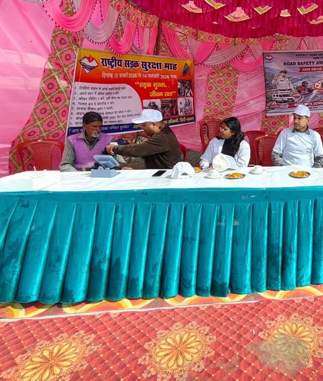 सड़क सुरक्षा माह–2026 के समापन अवसर पर जिलाधिकारी टिहरी गढ़वाल नितिका खण्डेलवाल के निर्देशन में चम्बा टैक्सी यूनियन परिसर में परिवहन विभाग एवं स्वास्थ्य विभाग के संयुक्त तत्वावधान में चालकों एवं परिचालकों के लिए स्वास्थ्य परीक्षण शिविर आयोजित किया गया।